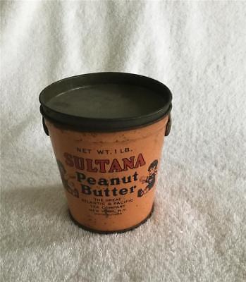 VINTAGE SULTANA PEANUT BUTTER TIN WITH ORIGINAL LID ALANTIC & PACIFFIC TEA CO
