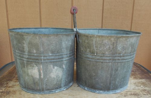 Title (ebay affiliate link): Vintage Farm House Metal Galvanized Double Water Old Wood Handle / Scrub Bucket
