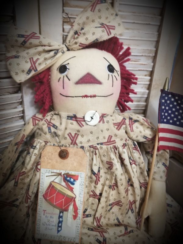Title (ebay affiliate link): Primitive Raggedy Ann Doll w/ Flag ~*~ Annie ~*~ USA ~*~ Americana ~*~