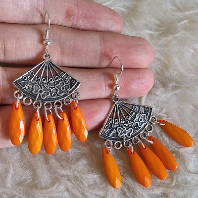 Title (ebay affiliate link): Colorful Womens Bohemian Antique-Flower-Plate Orange Beads Dangle Hook Earrings