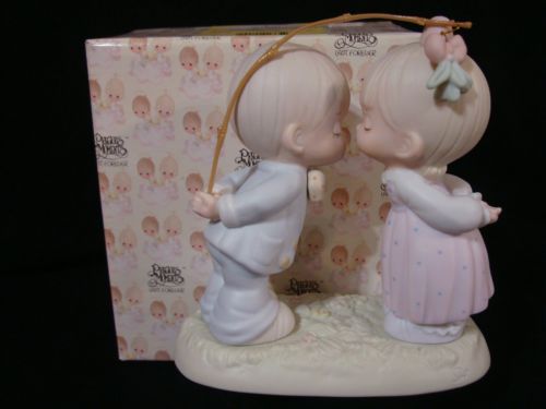 Title (ebay affiliate link): Precious Moments-Boy & Girl Kissing Under Mistletoe-Blessings From Above