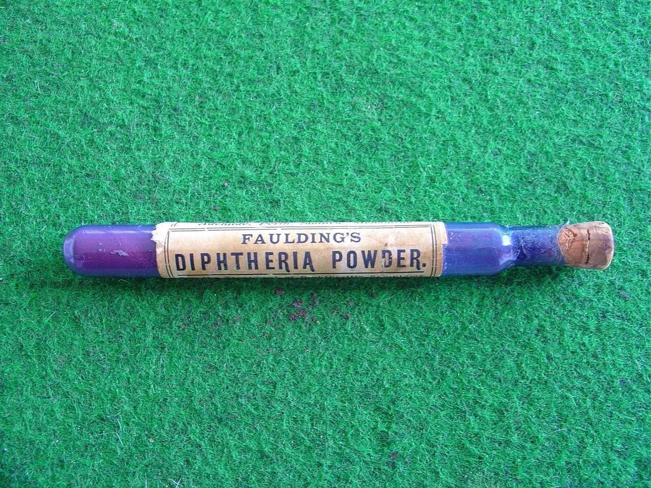 Title (ebay affiliate link): 1900''s F.H. Faulding Diptheria powder purple glass vial/vintage/retro/chemist