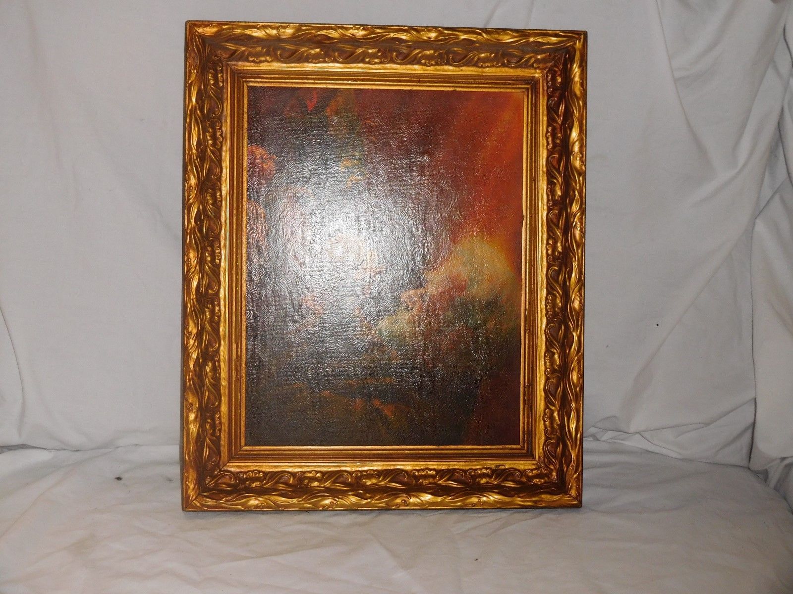 ANTIQUE 1969 GOLD WOOD FRAME WITH PRINT PAINTING 18 X 15