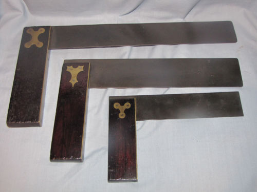 Title (ebay affiliate link): 3-ANTIQUE 6" 9" 12" ROSEWOOD & BRASS TRY SQUARE LOT VINTAGE
