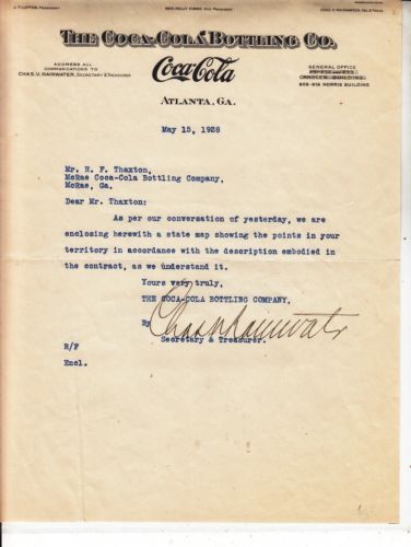 Title (ebay affiliate link): THE COCA-COLA BOTTLING COMPANY ATLANTA GA. .LETTERHEAD DATED MAY 15, 1928