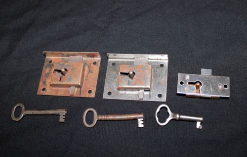 Vintage Antique Barrel Key & Lock Set Furniture Cabinet Desk Drawer Box,Lot of 3