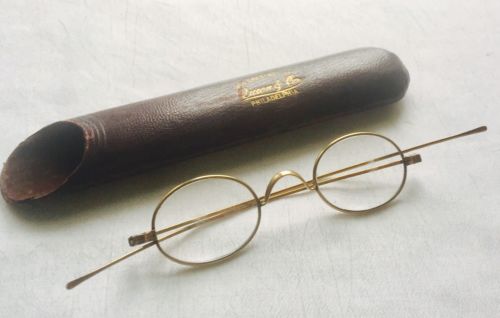 Title (ebay affiliate link): Antique GOLD Tone / Filled? WAR FRANKLIN Look Curly Nose Spectacles with Case