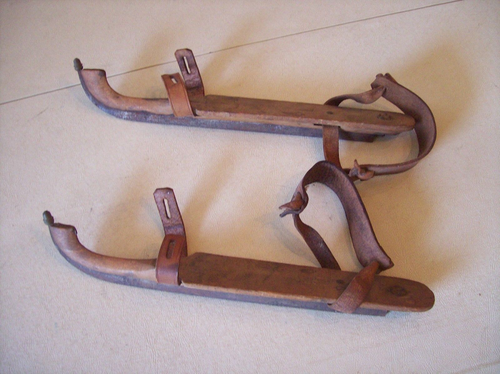 Title (ebay affiliate link): Antique Vintage Dutch Wooden Ice Skates w/ Leather Straps Primitive Home Decor