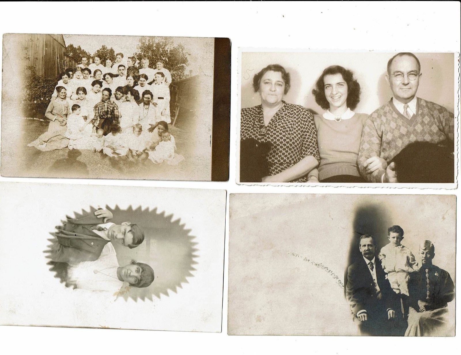 4 Card Lot, Real Photo (RPPC), People, Children, Men, Women, Large Group!