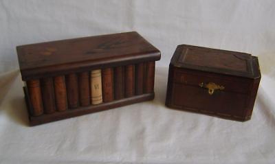 Victorian Sorrento Inlaid Olive Wood Row of Books Box & Other Inlaid Box A/F