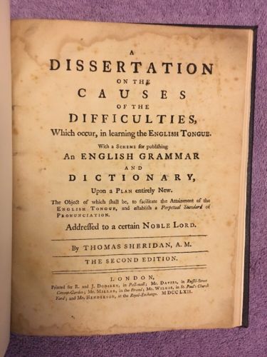 Title (ebay affiliate link): Thomas Sheridan DISSERTATION ON ELOCUTION OF ENGLISH - 2nd ed. (1762) in LEATHER