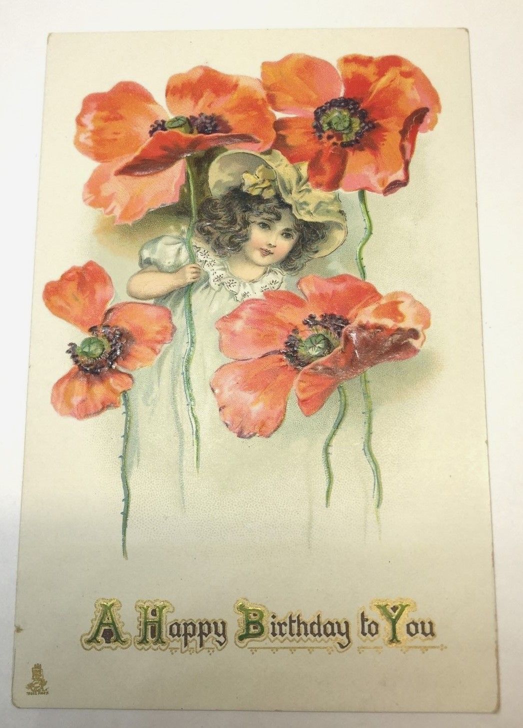 Title (ebay affiliate link): VINTAGE POSTCARD TUCK "Birthday Series No 250" girl & poppies unposted