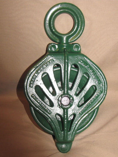 Title (ebay affiliate link): Antique Vintage MOORE M.F.G.Cast Iron Barn Pulley Old Farm Tool Primitive