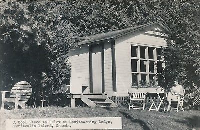 Title (ebay affiliate link): A Cool Place to Relax at Manitowaning Lodge, Manitoulin Island Canada RPPC (416)