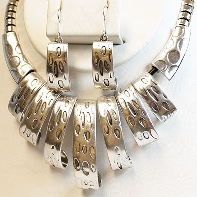 Title (ebay affiliate link): CHUNKY WESTERN ANTIQUE SILVER METAL DECOR NECKLACE SET