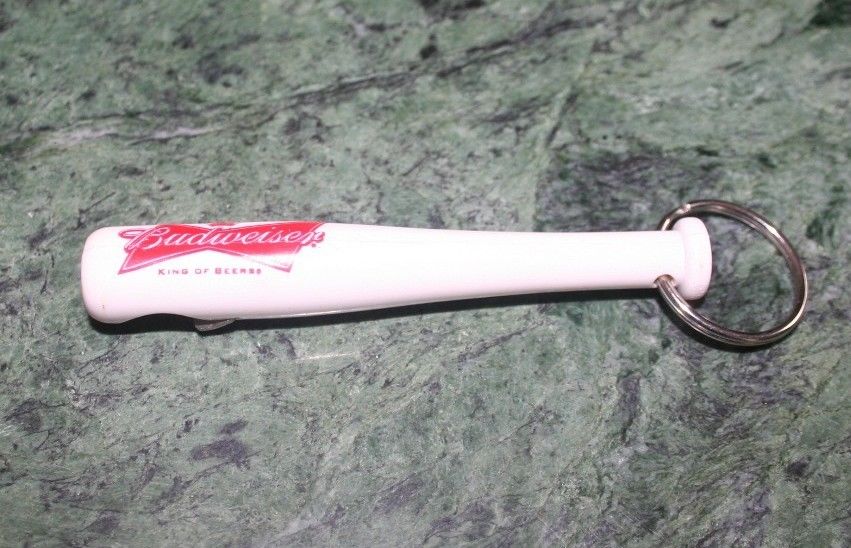 Title (ebay affiliate link): BUDWEISER BEER BOTTLE BASEBALL BAT BOTTLE OPENER KEY CHAIN
