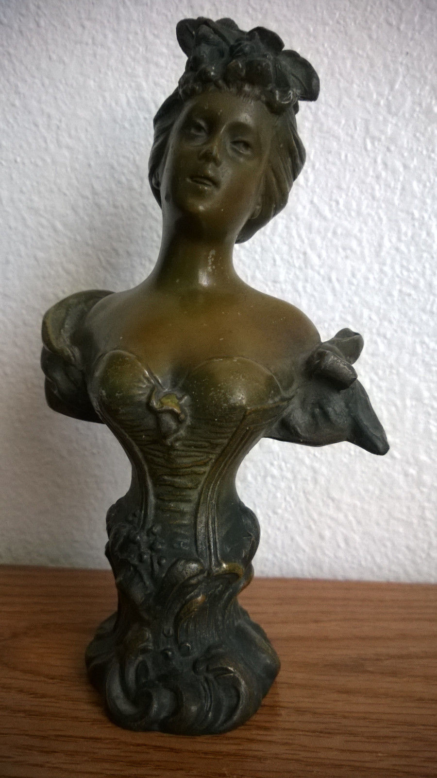 Title (ebay affiliate link): Beautiful Sophisticated 18th Century Woman Estate Antique Metal Bust Statue B-9