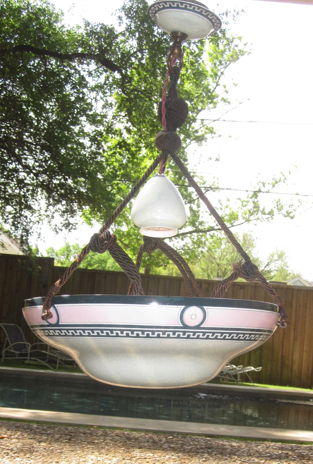 Royal Worcester Antique Art Nouveau Porcelain Ceiling Lamp Hanging Bowl Pendant