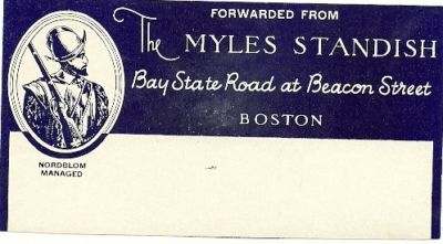 HOTEL MYLES STANDISH luggage label (BOSTON)