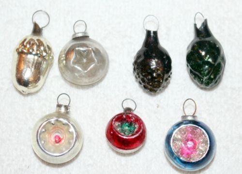 Title (ebay affiliate link): Indents, Pine Cone, Berry, Acorn. Seven Miniature Glass Ornaments. Japan.