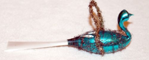 Title (ebay affiliate link): Wire-wrapped Blue Swan, with Spun Glass Tail. 1920s German Glass Ornament.