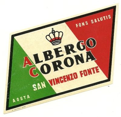 HOTEL CORONA luggage AOSTA label (SAN VINCENZO FONTE)