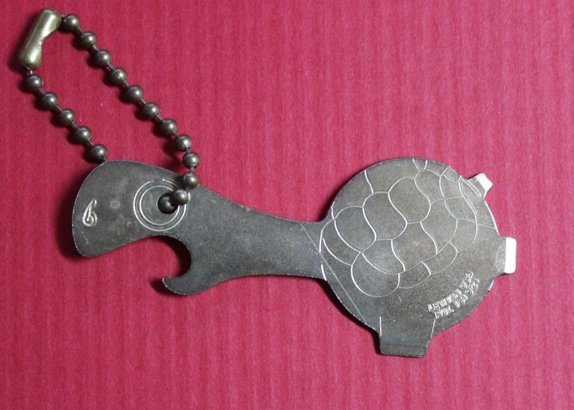 Title (ebay affiliate link): Vintage Turtle Shaped Bottle Opener Key Chain Lewtan USA
