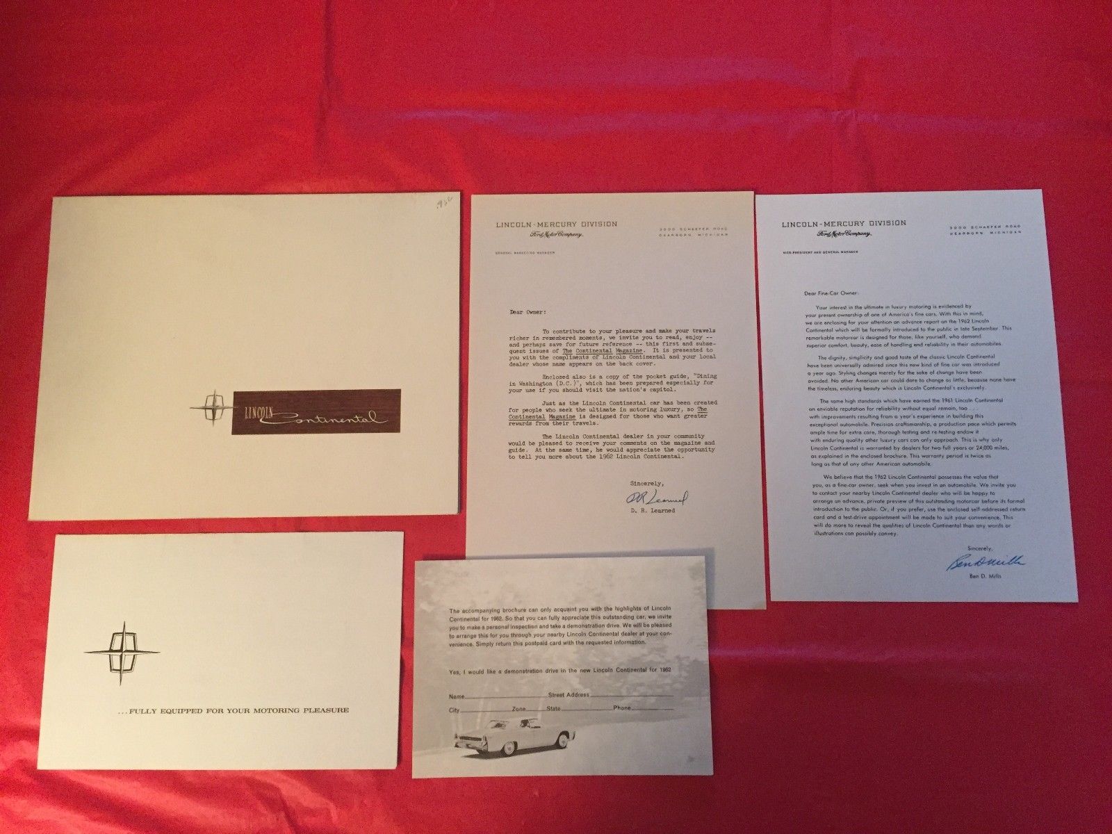 LOT 5--1962 Lincoln "Continental" Car Dealer Sales Brochures & Letters