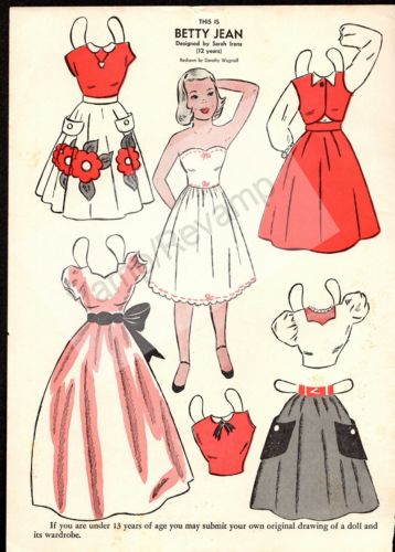Title (ebay affiliate link): JACK and JILL Magazine Paper Dolls c. 1953 Betty Jean - Free Shipping Offer