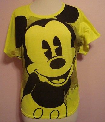 Title (ebay affiliate link): Disney Parks Authentic Womens Neon Mickey Face T-Shirt - Size M - 100% Polyester