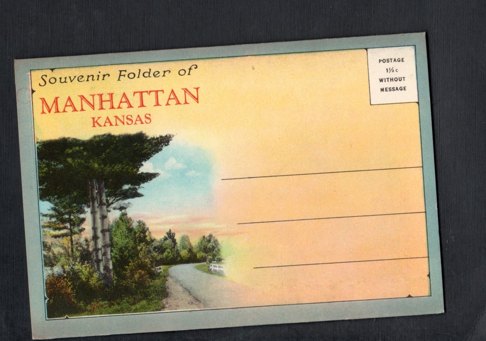 Title (ebay affiliate link): E895 Linen folder postcard Manhattan Kansas mint condition
