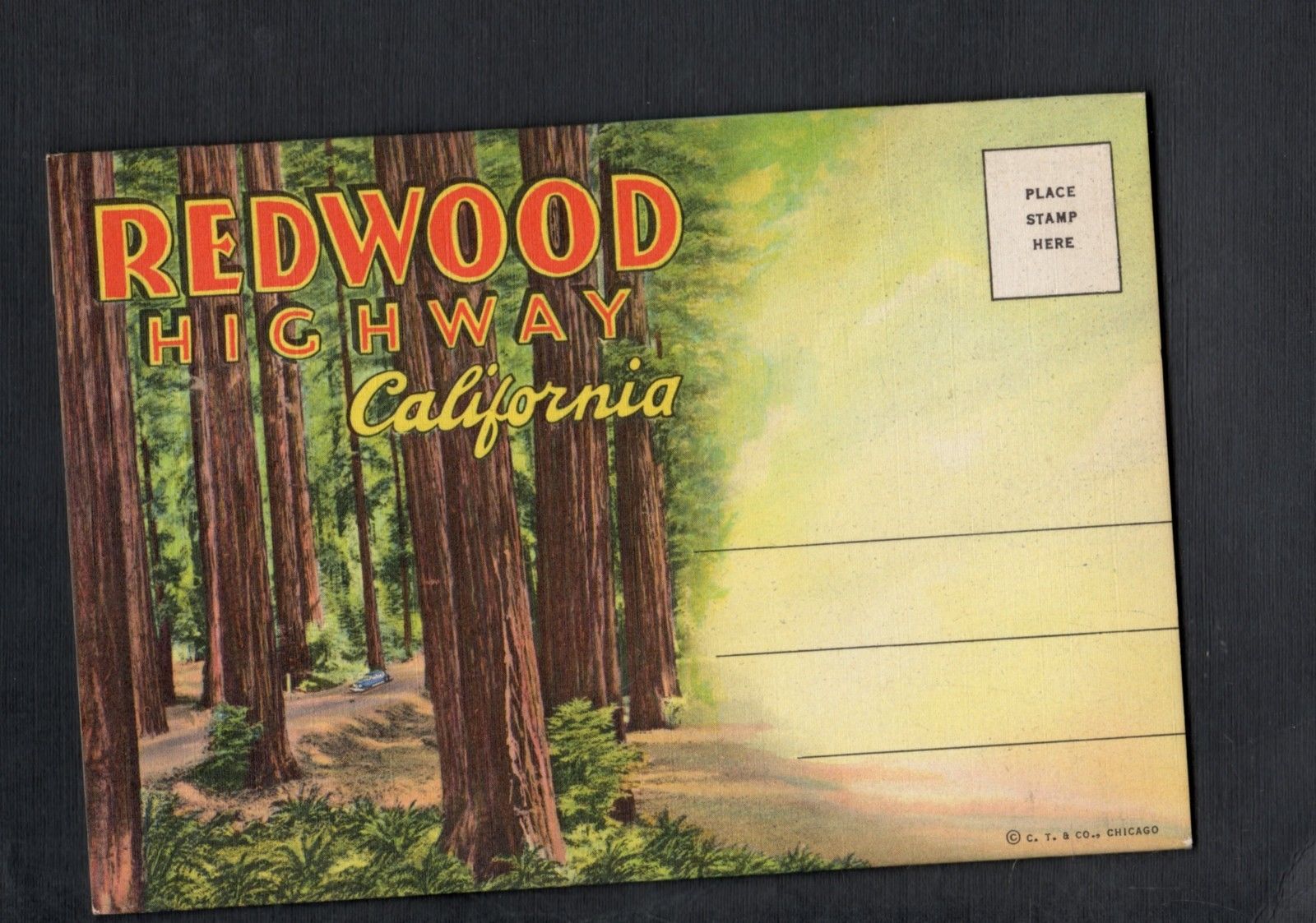 E896 Linen folder postcard Redwood Highway California mint condition