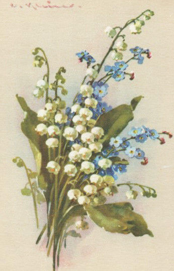 Title (ebay affiliate link): A/S CATHARINA KLEIN ~ BEAUTIFUL SPRAY OF LILY OF VALLEY & BLUE FORGET-ME-NOT PC