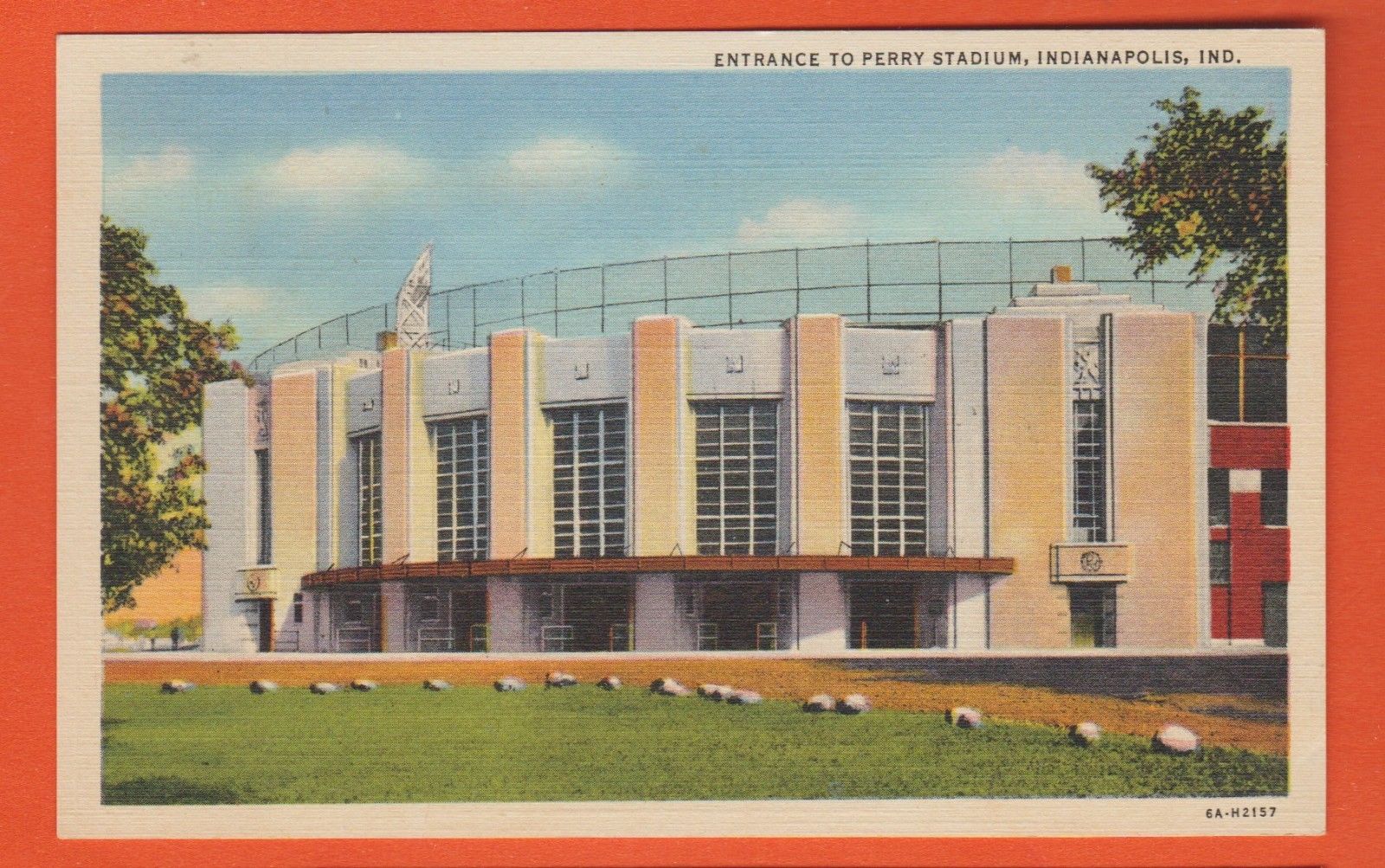 Title (ebay affiliate link): Indianapolis, Ind/ entrance to Perry Stadium/ linen postcard