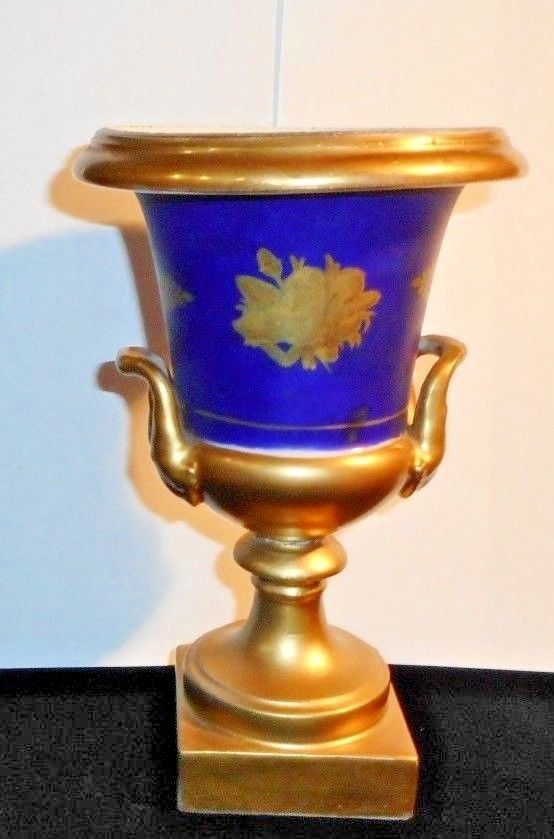 19th Century ANTIQUE COBALT BLUE & GOLD PORCELAIN PEDESTAL URN 7.5"
