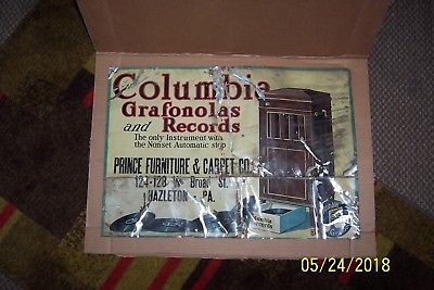 Title (ebay affiliate link): Antique COLUMBIA GRAFONOLAS and RECORDS Adv. Sign/PRINCE FURNITURE Hazleton, PA.