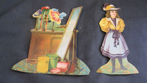 Title (ebay affiliate link): VINTAGE ADVERTISING LION COFFEE VICTORIAN TRADE CARDS PAPER DOLLS THE MILLINER