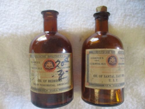 Title (ebay affiliate link): 2 Vintage Amber Fritzsche Brothers Bottles, Oil of Santal & Oil of Hedeoma, NY