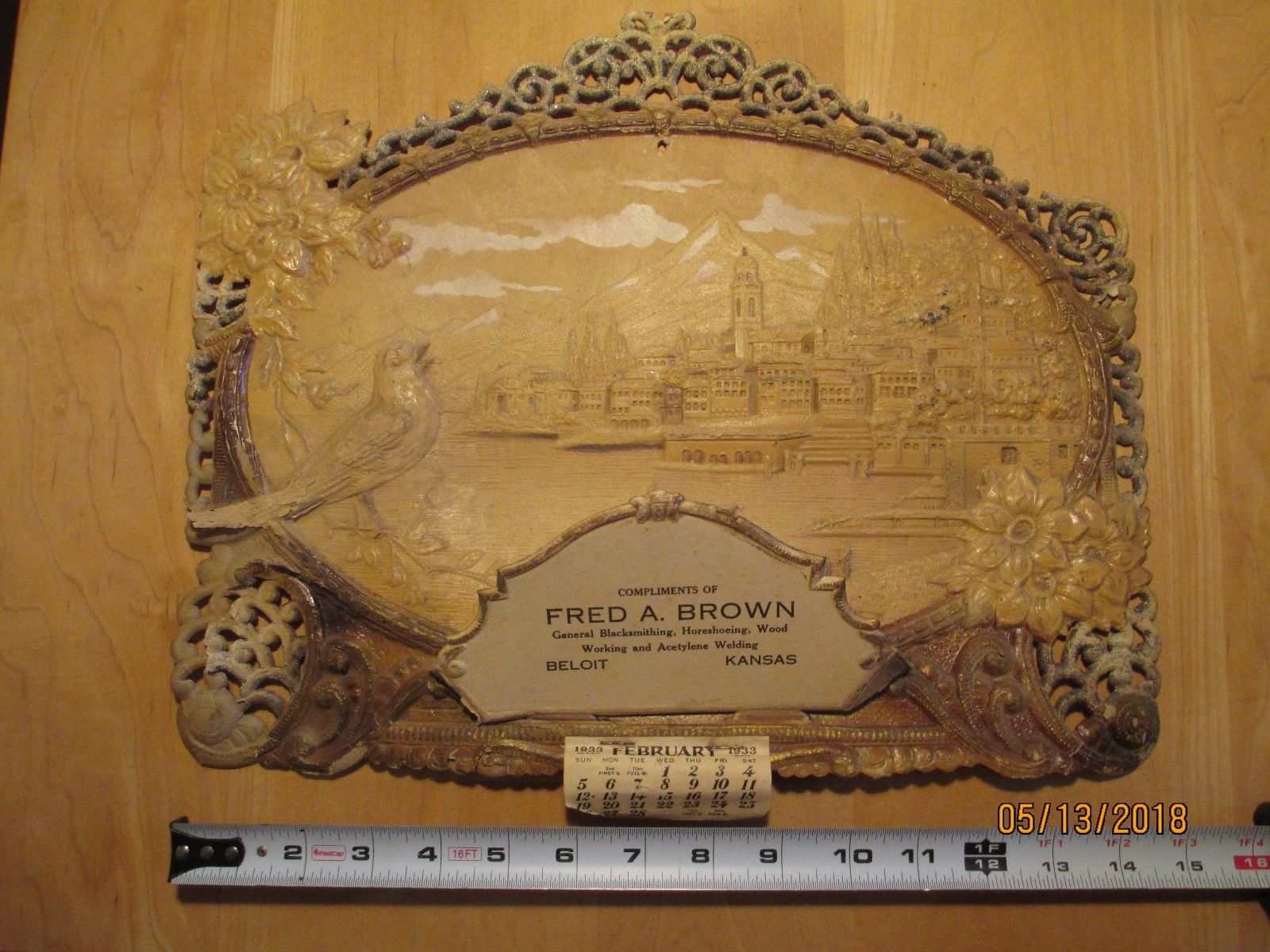 Title (ebay affiliate link): Antique 1933 Beloit, Kansas 3 Dimensional CalendarBlacksmith Horseshoeing Wood