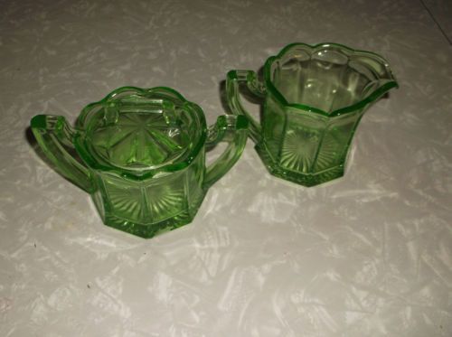 GREEN DEPRESSSION WARE CREAMER AND LIDDED SUGAR