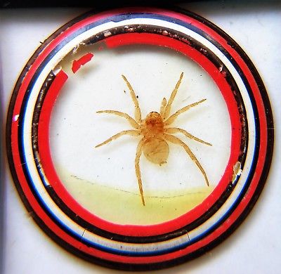 Antique MICROSCOPE SLIDE of Whole GROUND SPIDER