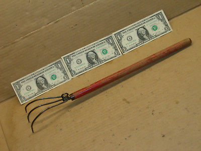 Vintage antique garden claw long red handle farm planting yard gardening tool