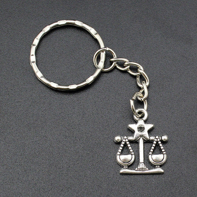Libra Zodiac Keychain Silver Metal Keyring Handmade Vintage Gifts Collectibles