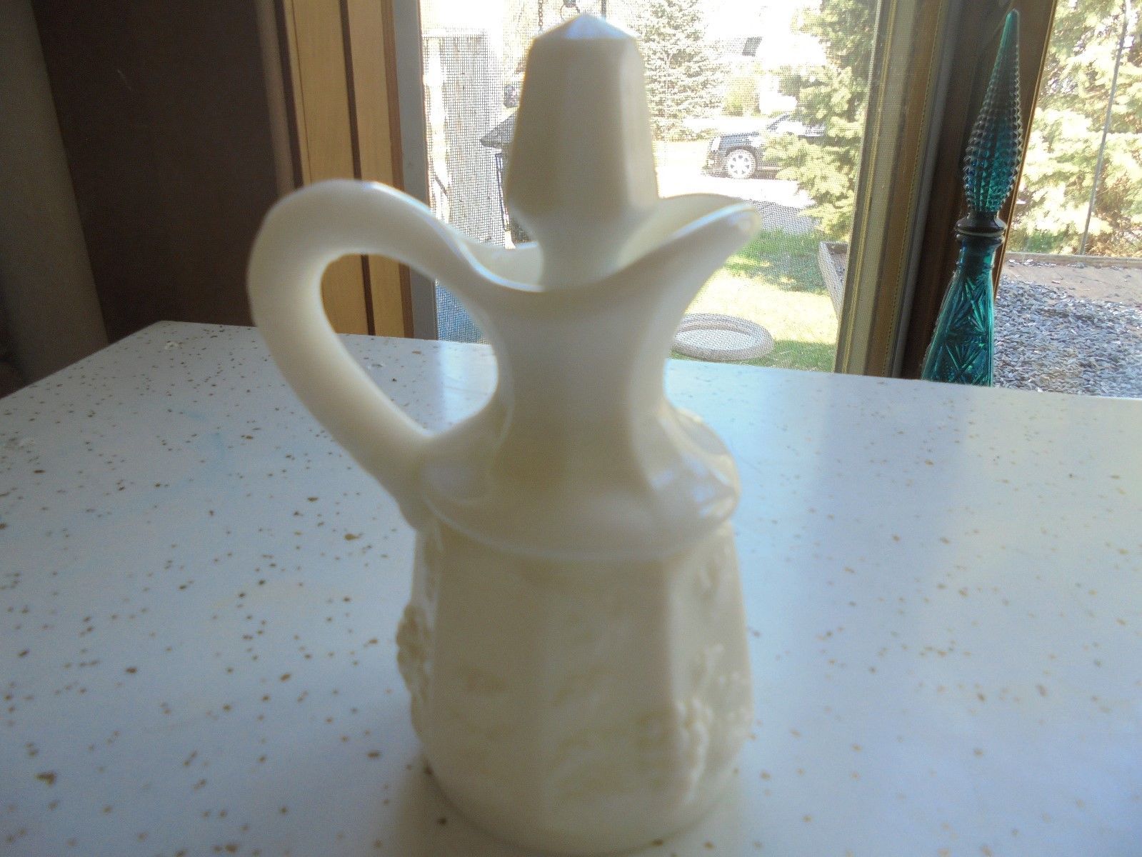 Title (ebay affiliate link): Vintage Small White Milk Glass Oil/Vinegar pourer 4 3/4" tall
