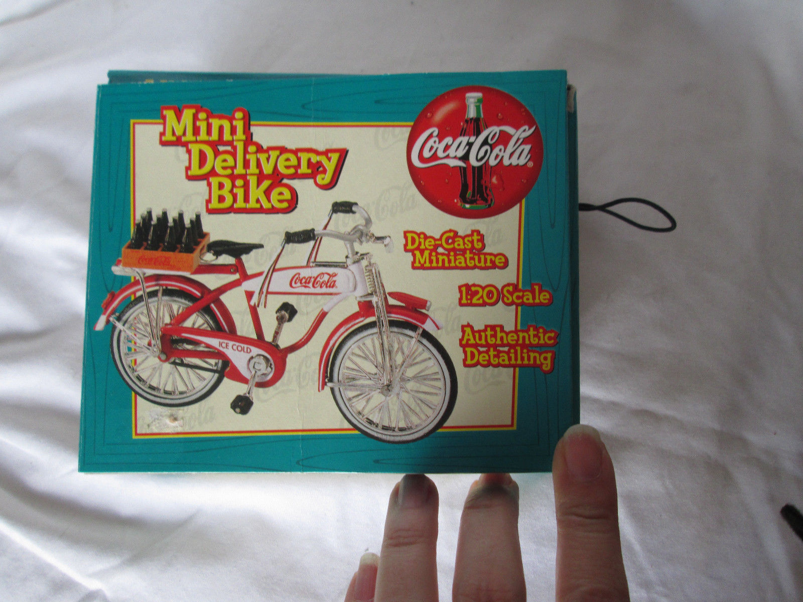 Title (ebay affiliate link): 1997 Coca Cola Mini Delivery Bike Die Cast Limited Edition in box 1:12th scale