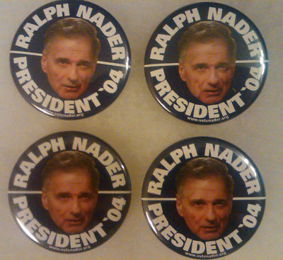 Title (ebay affiliate link): Four 2004 Ralph Nader for President Campaign Pinbacks