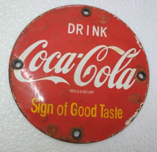 Title (ebay affiliate link): PORCELAIN SIGN DRINK COCA-COLA SIZE- 5" INCH DIA APPROX