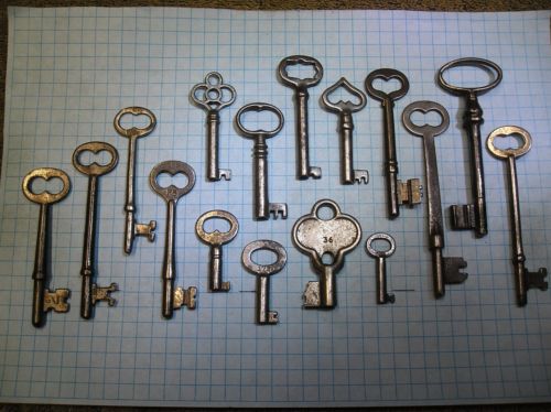 Title (ebay affiliate link): LOT OF 16 ANTIQUE SKELETON, FURNITURE, BARREL, CABINET AND OLD LOCK KEYS