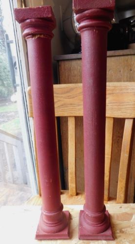 PR VTG CARVED SALVAGE TURNED WOOD COLUMNS PILLARS 22 INCHES LONG !!