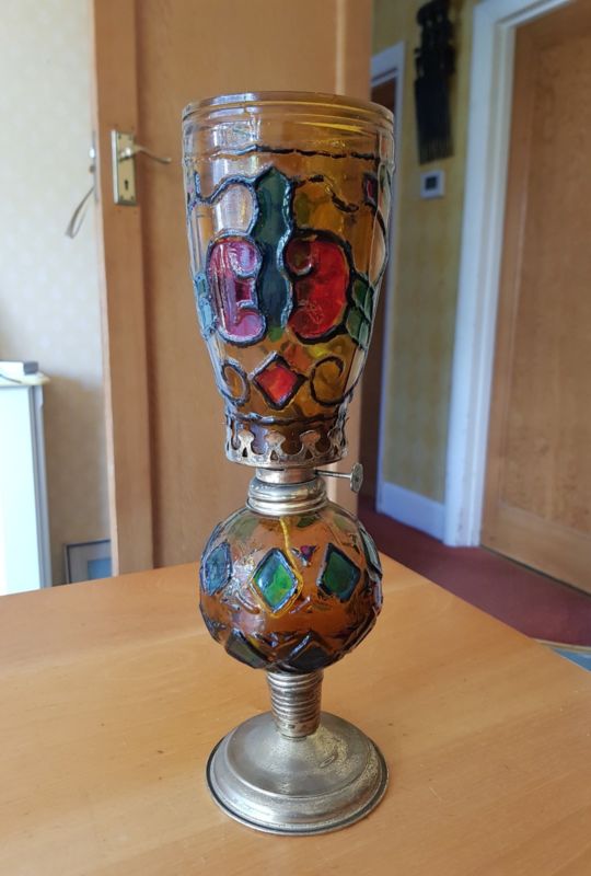 Title (ebay affiliate link): Large Vintage Oil Lamp Pixie Fairy & Glass Chimney on a Brass Stand 12 Inches